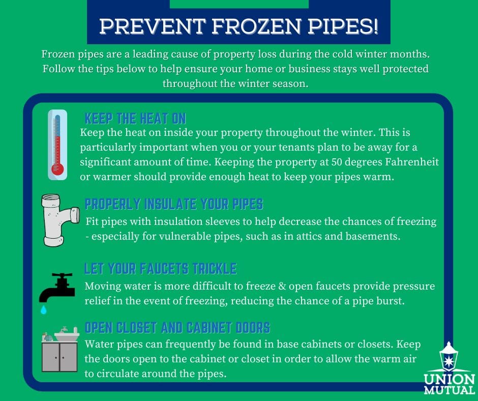 - Be sure to check other pipes in your home or building, especially along the same wall. If one of your pipes as frozen, you may have others as well.